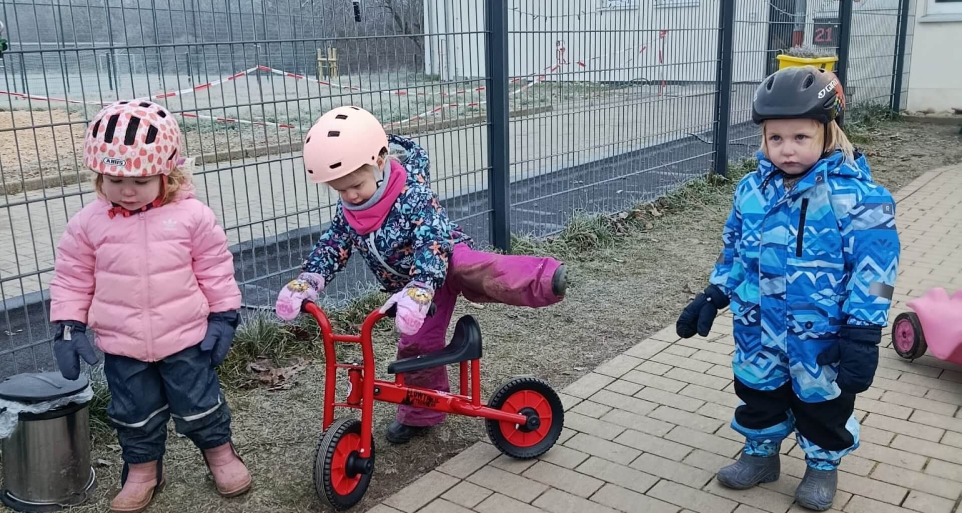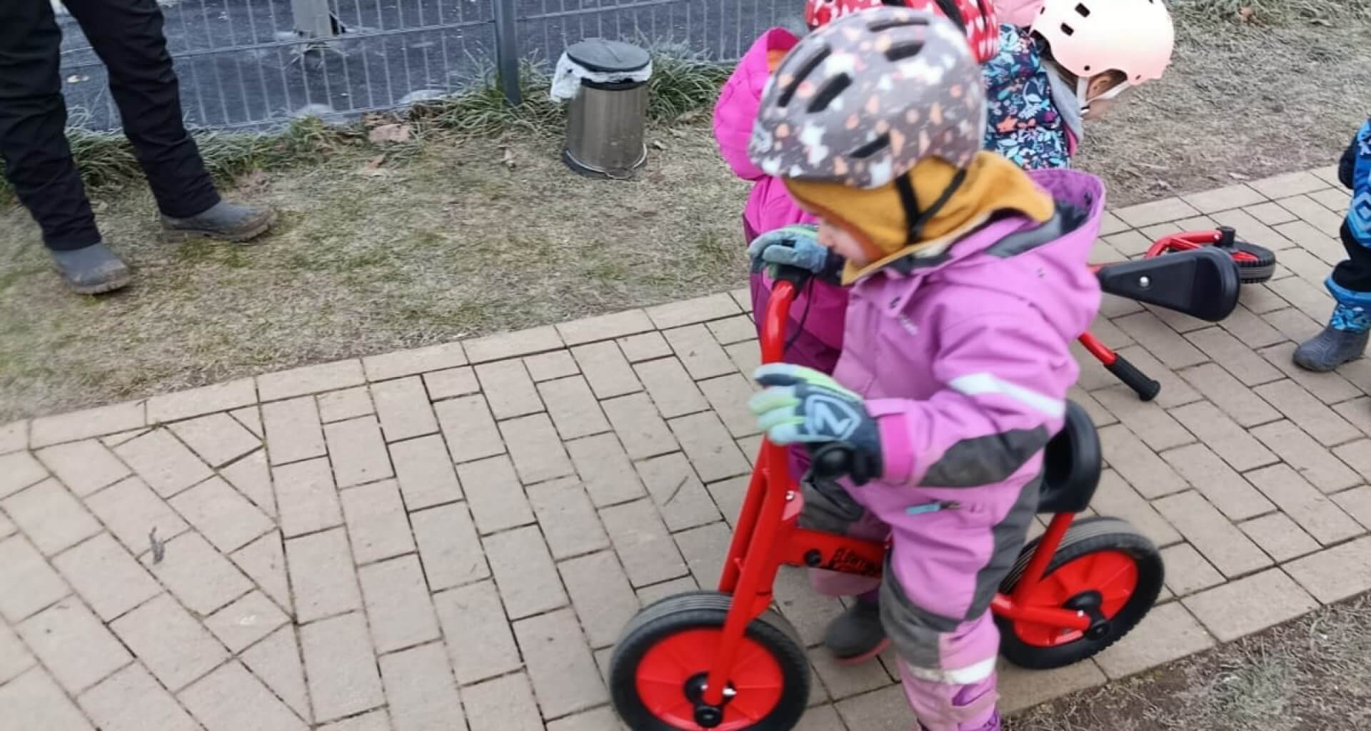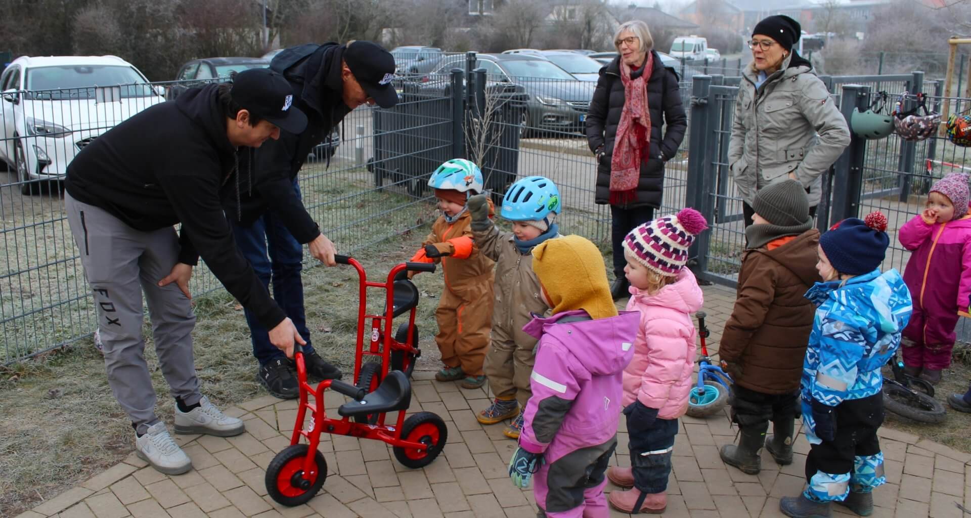 Die Übergabe der Laufräder fand im Januar statt. Die Kita-Leitung zeigte sich sehr erfreut über die Unterstützung. Noch vor Ort wurden die Räder von einer Gruppe Kinder ausgiebig auf Herz und Nieren geprüft – mit einem klaren Ergebnis: für gut befunden!